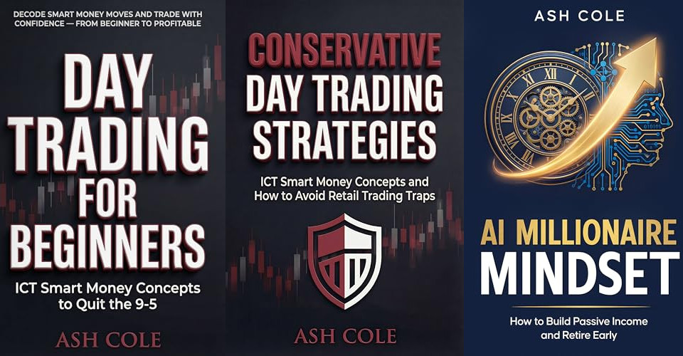5 Books. Two series. One mission: replace hype with process. The Smart Money Concepts Mechanical Trading Series turns ICT’s institutional price action framework into rule-based systems you can execute the same way every session. Day Trading for Beginners builds the foundation. Conservative Day Trading Strategies hands intermediate traders a single mechanical daily script, with real chart examples and the retail traps that cost them money every week. The Money & Habits Psychology Series tackles the other side — the habits and mindset that make or break your results. Small, Stacked, Seen is a 90-day behavioural rewiring system. The Wealth Code exposes the invisible money cages built in childhood. AI Millionaire Mindset shows you how to build digital income streams using AI. No fluff. No shortcuts. Just honest, actionable frameworks from a former corporate lawyer who walked away from a career to build a life.